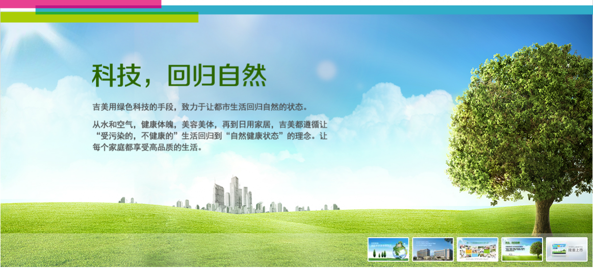 湖南吉美生物科技发展有限公司是一家集环境净化、营养食品、运动器材、美容美体、日用家居等系列产品研发、生产及销售为一体的现代化高科技企业。 从2005年诞生至今,吉美始终专注于“家庭健康”领域,不断研发基于360度关爱家庭的全系列产品,产品分别通过GMP认证、国家3C认证、欧盟CE认证等多项国内国际权威认证。凭借卓越的产品品质和优质的服务,赢得了广大消费者的普遍好评,业务遍布香港、台湾、俄罗斯、中亚、东欧等十多个国家和地区。公司先后荣获“湖南省保护消费者权益示范单位”、“中国消费者满意名特优品牌”、中国质量万里行“知名品牌”、“中国知名品牌”等荣誉奖项。成为国内家庭健康产业一颗耀眼的明星。 通过独特的“吉美移动商务”创新营销模式,致力于做与众不同的企业、做尊重消费者的企业,吉美正逐步成为业界的标杆,被众多企业视为典范。 同时,吉美还是一家提供商业机会的优秀企业,经过企业员工不懈的努力,拥有规模化的经销商销售服务团队,为千万个家庭的健康作出卓越的贡献。 [详细介绍] 暂无记录
